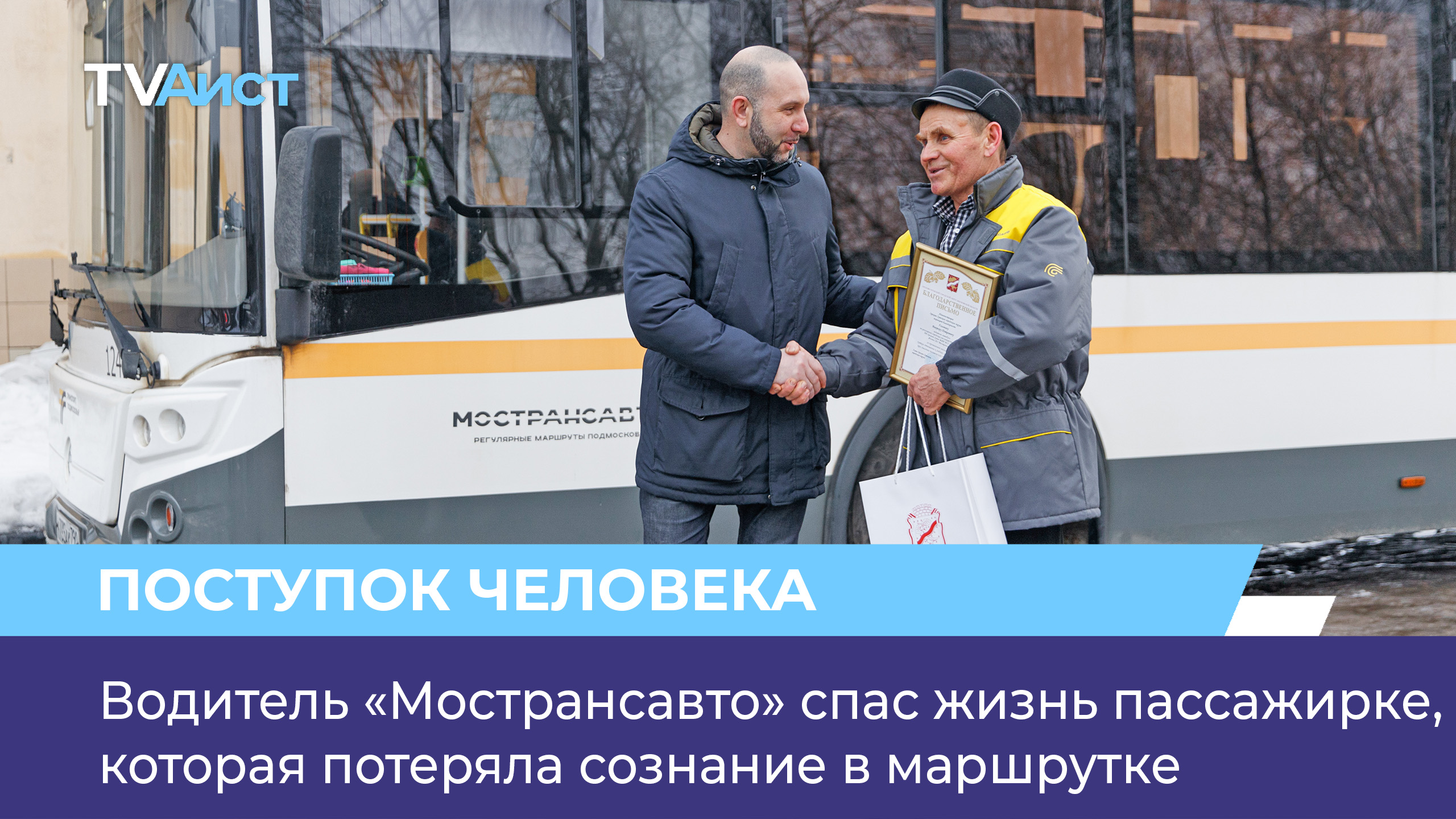 История, которая облетела всю Московскую область. Водитель «Мострансавто» спас жизнь пассажирке. За героический поступок его лично поблагодарил глава округа Руслан Заголовацкий. Подробности этой истории, в нашем следующем репортаже.