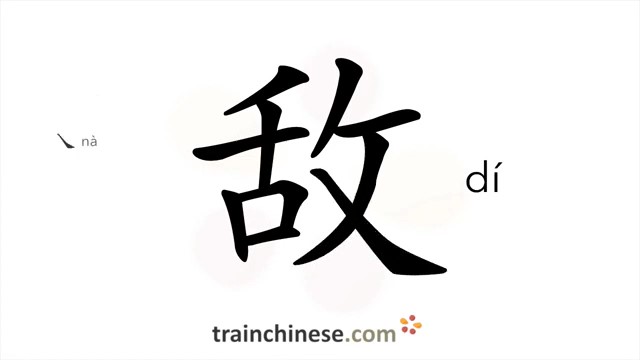 敌 (dí) enemy; foe; to match, oppose; fight; resist