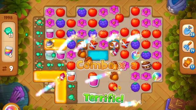 GardenScapes Level 1998 no boosters (16 moves)