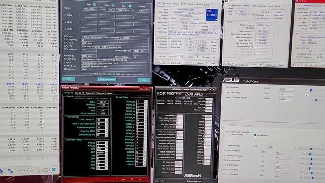 update : heard that bcllk oc has aida64 bug that latency is lower than it is supposed to be. so please see the below as fun. [My first try with bclk OC DDR5 - latency test] ○ CPU : 12900K (SP103) / bclk 102.90 / e-cores off ○ Ram : Hynix 4800 CL40 ○ Ram OC : 6585Mhz-30-37-37-26-280-1T ○ MB : Z690 Apex (Bios 0806) ○ Voltages (Bios) : CPU 1.420v(llc7) / VDD 1.435v / VDDQ 1.435v / MC 1.300v / SA Auto ○ Cooling : MORA 420 Pro (CPU, VGA, RAM) out on balcony. PC itself inside the room. https://photos.app.goo.gl/QiZSNN5LvXWXezPN9 [My first try with bclk OC DDR5 - stable setting] ○ CPU : 12900K (SP103) / bclk 101.60 ○ Ram : Hynix 4800 CL40 ○ Ram OC : 6502hz-30-37-37-26-280-1T ○ MB : Z690 Apex (Bios 0806) ○ Voltages (Bios) : CPU 1.330v(llc7) / VDD 1.435v / VDDQ 1.435v / MC 1.300v / SA Auto ○ Cooling : MORA 420 Pro (CPU, VGA, RAM) out on balcony. PC itself inside the room. https://photos.app.goo.gl/nvnfVpQaaShSv1d58 [update: Normal latency with no bclk oc] https://photos.app.goo.gl/sXEvjS4VWYiVLRem9