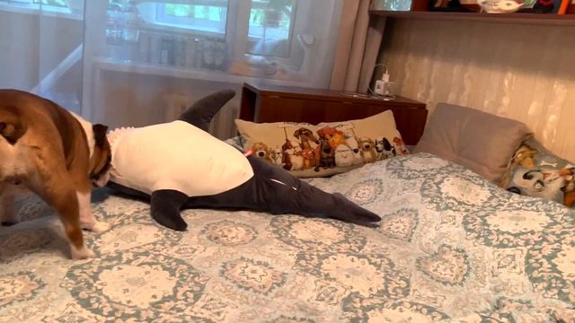 Реакция бульдога на АКУЛУ!!!
