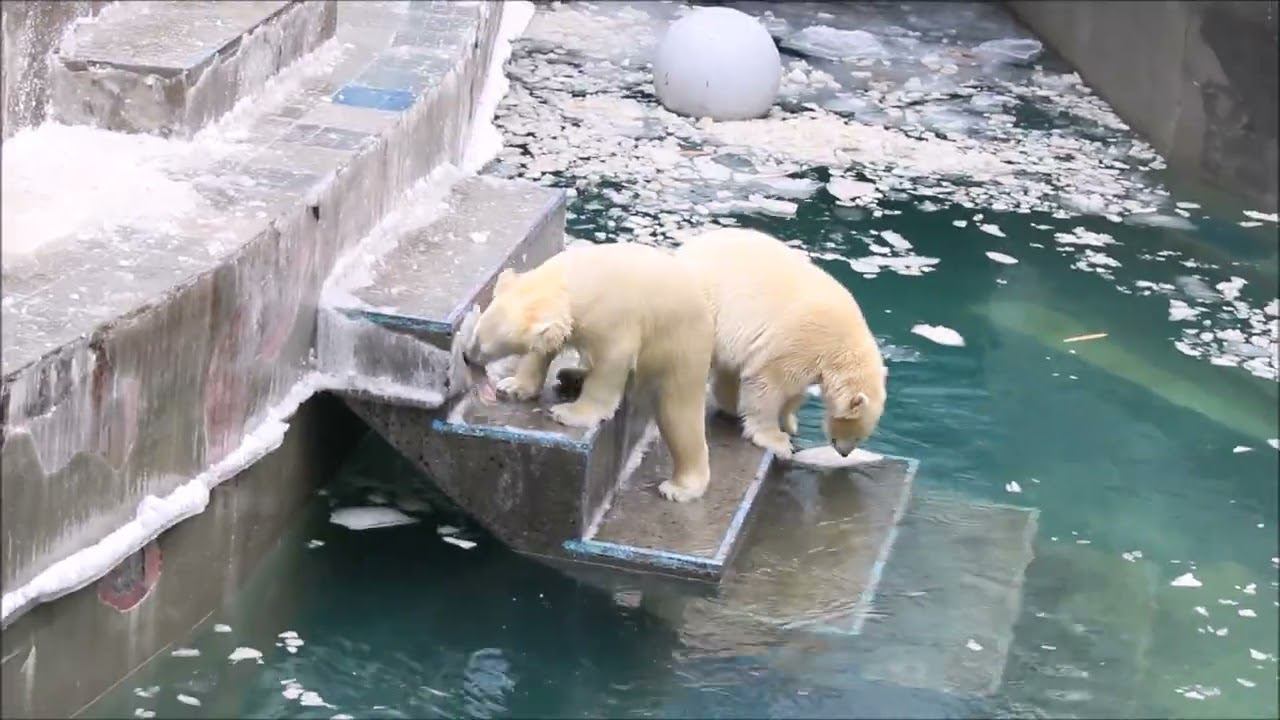 Герда родилась в Москве 20 ноября 2007 года. Её мама Симона, папа Врангель. В Новосибирск переехала 05.08.2008. В 2013 году у Герды и Кая родилась Шилка. В 2015 году она переехала в Японию. В 2015 году родился Ростик. 6 декабря 2018 года он переехал в Китай. В 2018 году родились Норди и Шайна. Сейчас они находятся в нашем зоопарке в закрытой от посетителей хозяйственной зоне. В другие зоопарки их не могут отправить. Сначала была пандемия, сейчас границы закрыты и санкции. Белые медведи Норди и Шайна содержатся в МУП «Новосибирский зоопарк имени Р. А. Шило» с рождения и по настоящее время. Данная пара молодых медведей находится вне экспозиции зоопарка, поэтому посетители не могут их видеть. Передача молодых медведей в другой зоопарк пока не планируется, — ответили на запрос редакции в пресс-центре мэрии Новосибирска. У них есть бассейн, игрушки. Их так же кормят как и раньше. Голодные не бывают. Шайна размером с маму, Норди с папу. Шайна командует Норди. Одиночные животные. Как правило, миролюбивы по отношению друг к другу, но между самцами в брачный период случаются стычки. Взрослые самцы могут нападать на медвежат. Гон с марта по июнь. Продолжительность жизни — максимум 25—30 лет; в неволе рекорд долгожительства — 42 года. Вес очень крупных самцов в некоторых частях ареала 700 и даже 800 кг: есть данные о зверях весом до 1000 кг. Обычно вес меньше. Самки всегда не только меньше, но и значительно легче самцов. Так, самцы в восточной Гренландии в состоянии нормальной упитанности весят 400—450 кг, хорошо упитанные — до 500 кг, самки, даже очень сытые, здесь же редко весят больше 350—380 кг, т. е. их вес составляет около 75% веса самцов. Длина тела на 3-й день после рождения 28—32 см, средний вес — около 755 г (650—840 г). На 26-й день длина тела увеличивается незначительно — до 35—38 см, а вес возрастает до 1125—1275 г. В возрасте 60 дней самцы весят около 7 кг, самки — около 6 кг при длине тела у первых 58—60 см, у вторых 54—58 см. В возрасте 4 месяца медвежата достигают веса 22—23 кг, в 6-месячном возрасте при длине около 110 см — 40—43 кг, в 8-месячном — 58—62 кг. Длина тела в возрасте с 6 до 9 месяцев нарастает по 6—7 см в месяц. Во время зимнего сна рост почти прекращается. В зоопарке медведей кормят утром морской рыбой, хлеб с рыбьим жиром внутри, морковь, яблоки, морская капуста, яйцо дают сырое. Медвежат подкармливают молоком из соски. На ужин мясо (говядина, конина, куры или индейка). Летом и осенью арбузы, дыни, ранетки, кабачки, тыквы, огурцы. Когда показательное кормление летом бросают живую рыбу. Медвежата с медведицей находятся до 2-х лет. 16 декабря 2022 года Герда родила 2-х медвежат. И это две девочки! Имена дали 25 июня. Медвежат зовут Стрелка и Белка. Обзор вольеров белых медведей https://www.youtube.com/watch?v=mAt_b7JD0B4&list=PLGvf0V-rAHxkpGKJaWIZIUxRKgKiqV3xZ&index=17&t=0s