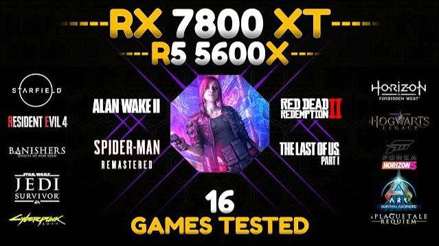 RX 7800 XT + Ryzen 5 5600x | Test in 16 Games (1440P - FSR - RT On/Off) =======(Timestamps)======= 0:00 Red Dead Redemption 2 2:16 Banishers Ghosts Of New Eden 3:25 Lies Of P 4:44 Spider Man Miles Morales 6:37 RTX/FSR 2 Spider Man Miles Morales 8:32 The Last Of Us Part I 10:10 Horizon Forbidden West 11:26 Hogwarts Legacy 12:53 RTX/FSR 2 Hogwarts Legacy 14:23 Star Wars Jedi Survivor 15:50 RTX/FSR 2 Star Wars Jedi Survivor 17:08 Spider Man Remastered 19:05 RTX/FSR 2 Spider Man Remastered 20:24 God Of War 21:23 Forza Horizon 5 22:25 Cyberpunk 2077 23:56 RTX/FSR 2 Cyberpunk 2077 25:18 Avatar Frontiers Of Pandora 27:03 Alan Wake 2 28:18 FSR 2 Alan Wake 2 29:35 A Plague Tale Requiem 31:29 Assassin's Creed Mirage =======(MY PC SPEC)======= ◆ Mobo : Gigabyte Aorus master B550 https://amzn.to/3rtTSDi ◆ Processor : Ryzen 5 5600x https://amzn.to/483A2lC ◆ Ram :XPG 4x8GB = 32gb 3600mhz https://amzn.to/3U58xBn ◆ GPU : Sapphire Pure AMD Radeon RX 7800 XT 16GB GDDR6 ◆ OS : Windows 10 - Version 22H2 ◆ XPG S40G 512GB RGB M.2 https://amzn.to/3NBVeV4 ◆ Corsair HX1000i Fully Modular (1000w) https://amzn.to/3OxVxUg ◆ Logitech Gaming Mouse https://amzn.to/3lB3vAi No Additional cost To You. I'll earn commission on qualified purchases. Use these Links for buying and help me to earn. =======(Social Media)======= Instagram ► https://www.instagram.com/gaming_bench/ Facebook ► https://www.facebook.com/Gaming-Bench-109041743952058/ Note: This GPU provided by RB Tech & Games For The Review. Get Special Discount While Sharing My Reference... ===== For Business Inquiries:- GamingBench07477@gmail.com ===== Disclaimer:- These video games are a work of fiction. The vehicles, weapons, fighting, blood, etc. may have been adjusted to fit into these video games. All characters appearing in these games are fictitious. Any resemblance to real persons, living or dead, is purely coincidental. There is no relation between these video games with real life. ===== Thanks for Watching!