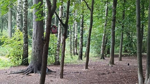 Молодой дятел очень занят