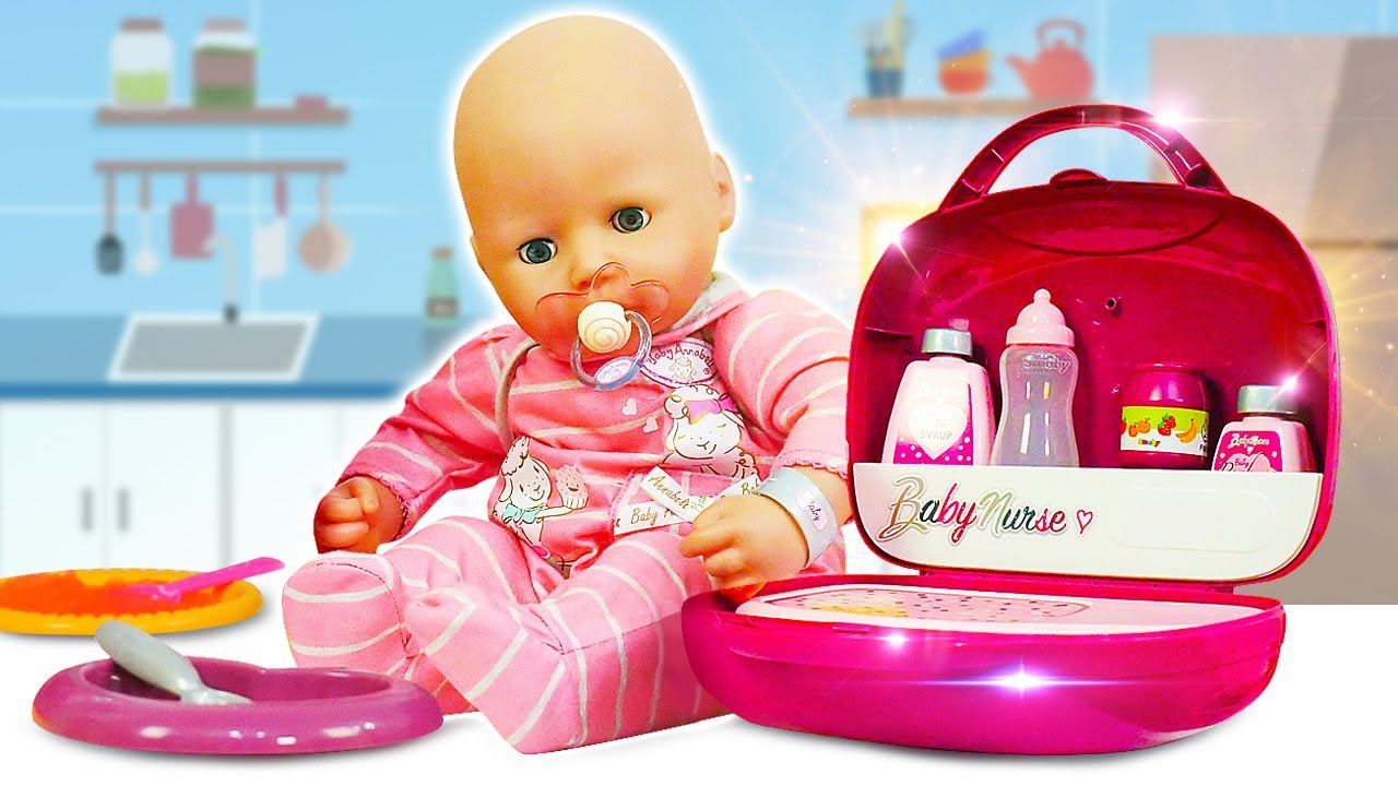 Видео куклы - Ухаживаем Как МАМА за БЕБИ Анабель! Набор Няни! - Весёлые игры Дочки Матери Baby Born