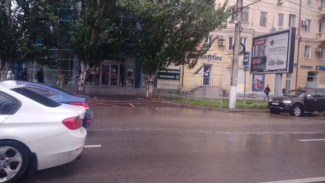 Потоки воды на Рабоче-Крестьянской после сильного дождя