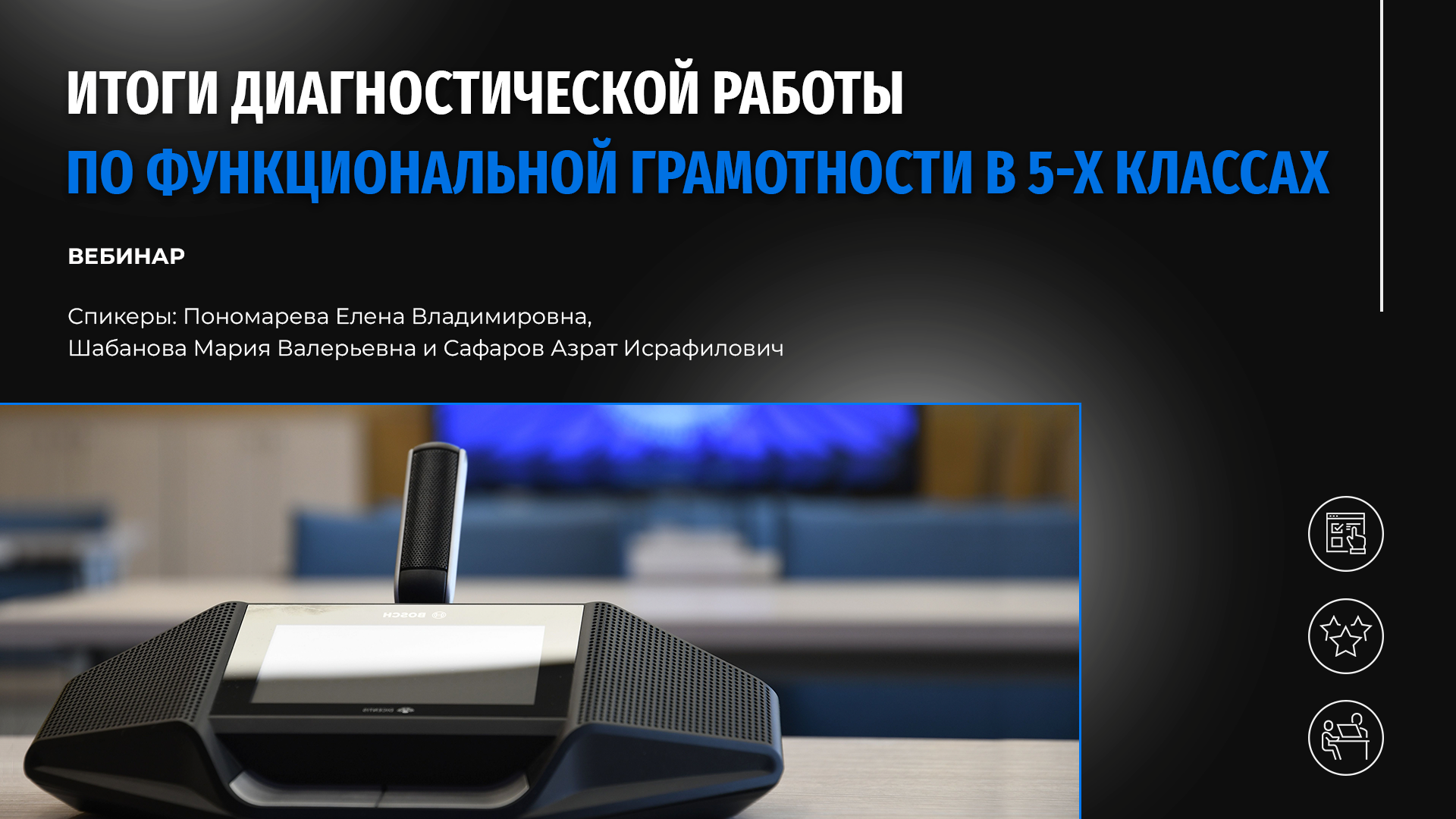 Приглашаем заместителей директоров образовательных учреждений по управлению качеством образования, учителей-предметников, преподающих в 5-х классах, и всех желающих посмотреть видеоматериалы, посвященные итогам диагностической работы по функциональной грамотности в 5-х классах общеобразовательных организаций города Москвы. Разработчики контрольных измерительных материалов, сотрудники Московского центра качества образования Елена Владимировна Пономарева, Мария Валерьевна Шабанова и Азрат Исрафилович Сафаров подвели итоги диагностики, сделали обзор тем, успешно освоенных школьниками, и тем, вызвавших затруднения, дали методические рекомендации по организации корректировочной работы.