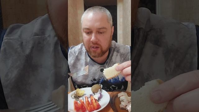 Еда на ужин - малосольная селёдка, картошка в мундире, ялтинский лук и перец болгарский. Приятного аппетита. #малосольнаяселедка #картошкавмундире #мукбанг # приятногоаппетита
