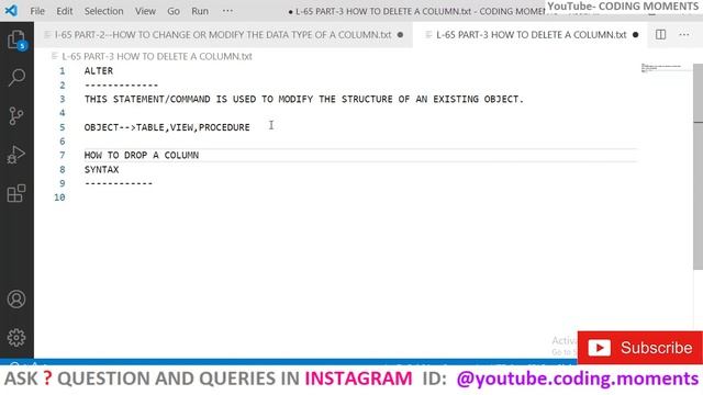 #65(PART-3)|| HOW TO DELETE A COLUMN || ALTER COMMAND IN SQL ||SQL lecture for beginners