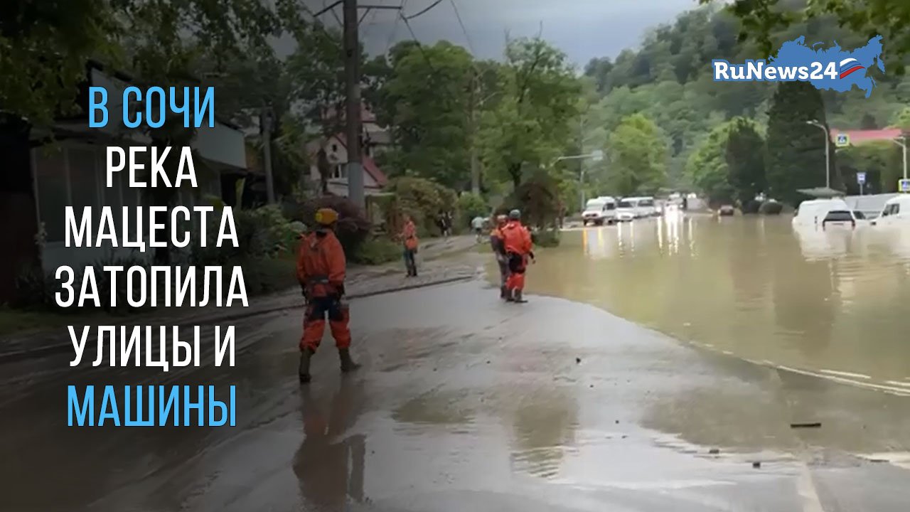 В Сочи в результате ливня река Мацеста в Хостинском районе вышла из берегов.