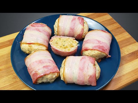УДИВИЛИ всех ГОСТЕЙ. НЕВЕРОЯТНАЯ ЗАКУСКА из ПРОСТЫХ ПРОДУКТОВ, ВКУС И АРОМАТ ПОКОРИЛ ВСЕХ. ? батон 1\3 часть ? лук 1 шт ? чеснок 2 зубчика ? куриное филе 500-600 гр (из 1 курицы) ? твердый сыр 100 гр ? бекон 12-15 полосок ? яйцо 1 шт ? свежая зелень ? копченая паприка 1 ч,л ? черный перец 0,5 ч.л ? соль 0,6 ч.л Приятного аппетита !!!