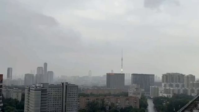 В Останкинскую телебашню в Москве ударила молния