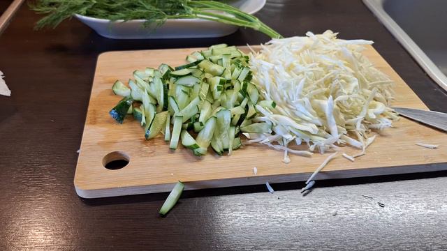 Салат с курицей и огурцом.