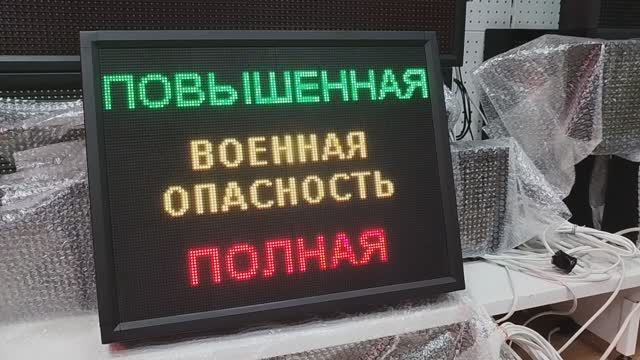 Световое табло "ПОВЫШЕННАЯ | ВОЕННАЯ ОПАСНОСТЬ | ПОЛНАЯ" с пультом переключения ledmig.ru