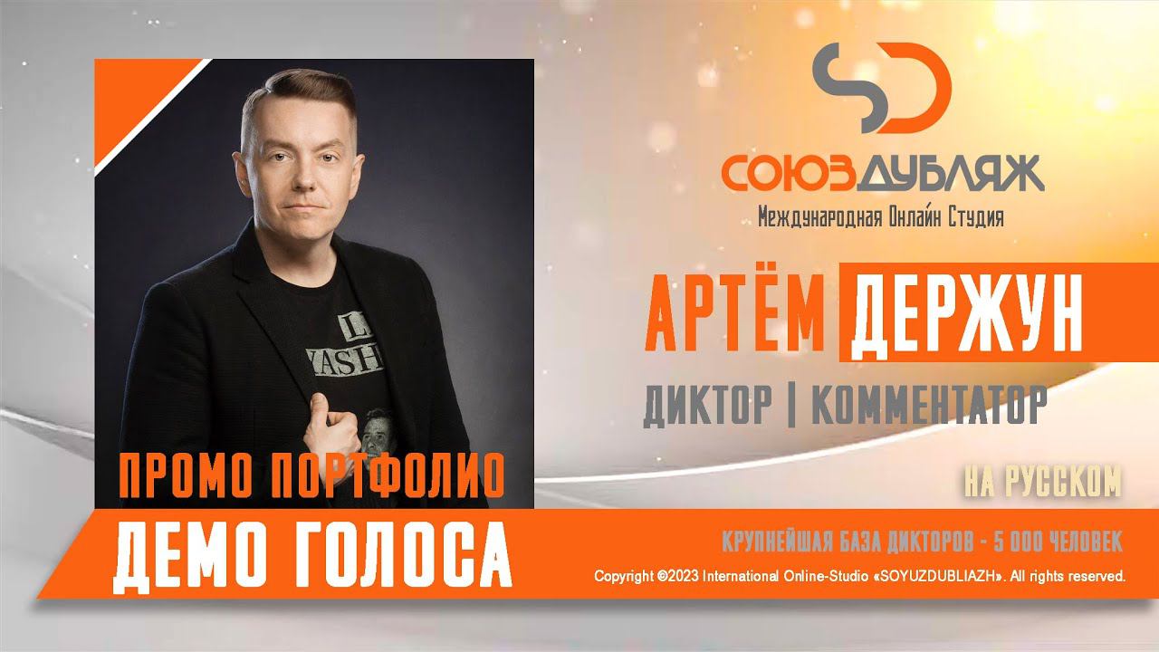 #СоюзДубляж #БазаДикторов #Озвучка ✔️Артём Держун, Диктор - Комментатор МатчТв, официальный голос ФК Урал. Международная Онлайн-Студия "СОЮЗДУБЛЯЖ" - профессиональная озвучка и дубляж. ▪️Рабочая группа в Телеграм: https://t.me/soyuzdubliazh ▪️Контакт для связи: https://t.me/SoyuzAdmin ▪️Подпишись:https://www.youtube.com/c/SOYUZDUBLIAZH ▪️Сайт: https://www.soyuzdubliazh.com/ Лучшие голоса для вашей аудиорекламы и видеороликов. База дикторов - 5 000 человек, профессионального уровня на ENG| FR| TR| RU| ISR| AZ| UA| KZ| UZ| языках. Мужские и Женские топовые голоса для озвучки любых проектов, таких как: Рекламы, Презентации, Фильмы, Сериалы, Игры, Мультфильмы, ТВ Шоу, Аудио-видео визитки. ✔️Сотрудничая с нами вы получаете свой проект под ключ, не выходя из дома или офиса. Наша слаженная команда из лучших дикторов, актёров озвучивания, режиссёров и звукорежиссёров в кратчайшие сроки озвучат или отдублируют ваш заказ на профессиональном уровне. Образцы работ нашего портфолио вы сможете посмотреть на канале СОЮЗДУБЛЯЖ. ВНИМАНИЕ: ✔️Мы приглашаем специалистов озвучки к сотрудничеству в нашей команде. Вы можете пройти по ссылке в наш телеграм канал и связаться с Админом для обсуждения. ✔️Всем заказчикам подобных медиа проектов по озвучки и дубляжу фильмов, сериалов, документалок обращаться непосредственно к Админу Телеграм группы СОЮЗДУБЛЯЖ, пройдя по ссылке: Проходи по ссылке: https://t.me/soyuzdubliazh International Online-Studio SOYUZDUDLIAZH presents a highly professional approach in voice-over and dubbing. ▪️Our working group https://t.me/soyuzdubliazh ▪️Chief manager https://t.me/SoyuzAdmin ▪️Follow https://www.youtube.com/c/SOYUZDUDLIAZH ▪️Web: https://www.soyuzdubliazh.com/ We offer You the best Voices for your Audio commercials and Video`s. Our Database contains over 5 000 voices of native speakers and high-class foreign language specialists in ENG| FR| TR| RU| ISR| AZ| UA| KZ| UZ|. Male & Female top level voices for all the variety of dubbing projects such as commercials, presentations, movies, TV-series, video and computer games, cartoons, TV-shows, audio & video portfolio’s – all in one place. As your business partner we guarantee a turn-key project without you leaving your house or office. Our target is to make sure that the dubbing of your project is made as quick as possible by a well-coordinated and professional team of the best speakers, film and sound directors. To whom it may concern! We invite dubbing specialists to join our team. Please contact our manager on Telegram https://t.me/soyuzdubliazh