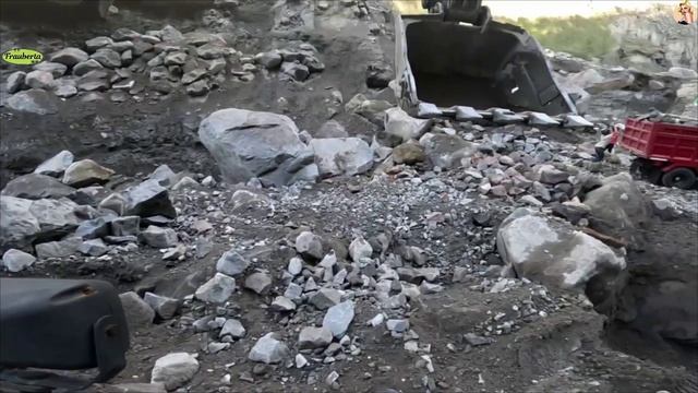 Строительство, экскаватор копает песок