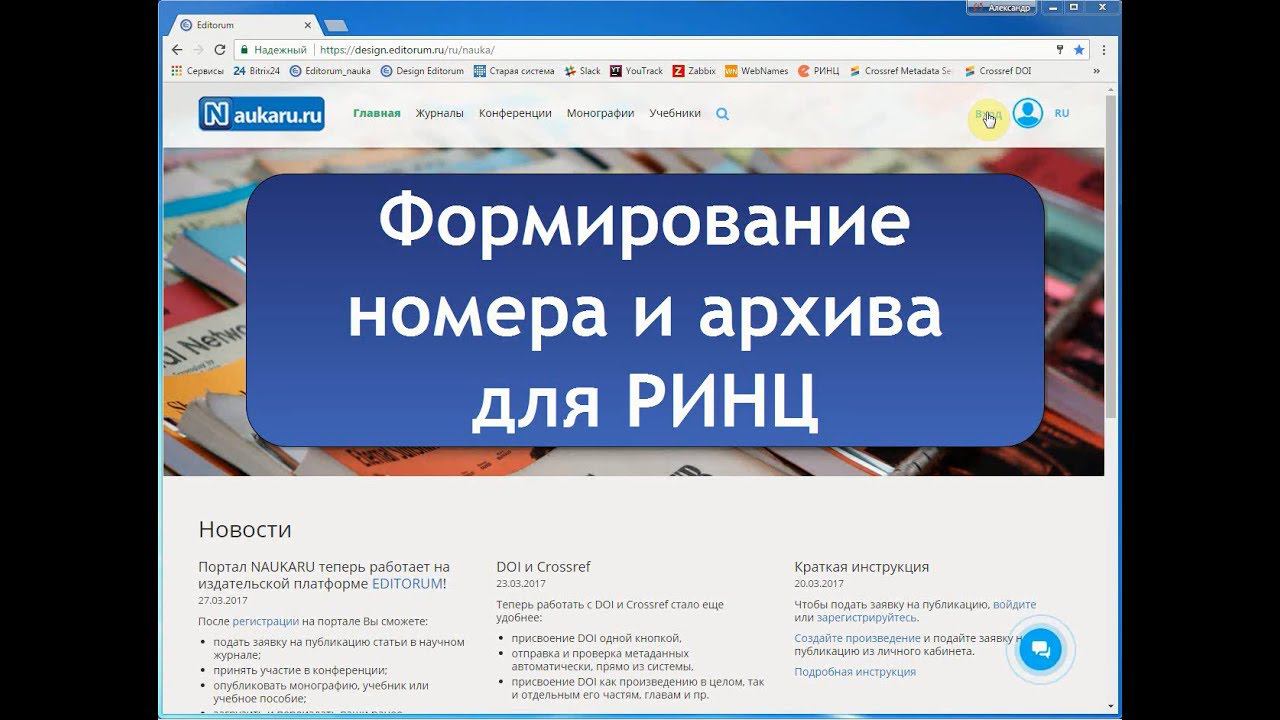 Формирование номера Выгрузка архива для РИНЦ