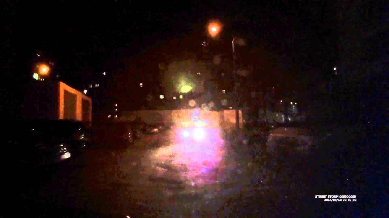 Ночь, неосвещенный двор, выезд на освещенную улицу. Задняя камера. Street Storm CVR A7620 подробнее тут: http://car-radar.ru/product/street-storm-cvr-a7620/