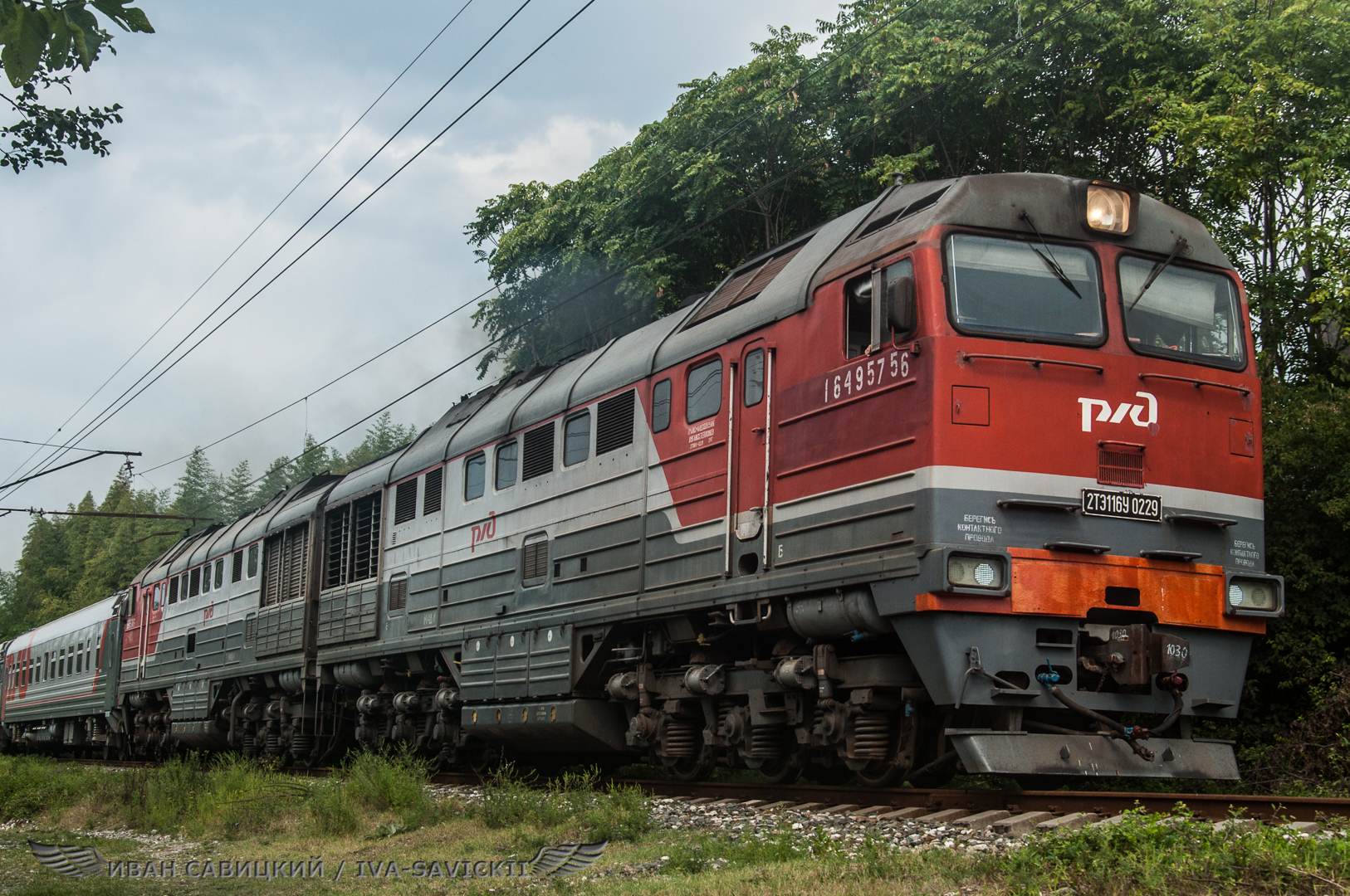 Тепловоз 2ТЭ116У-0229 отправляется со станции Новый Афон, Абхазия, лето 2022 года. Все видео созданы мной в рамках проекта Путешествия и Транспорт