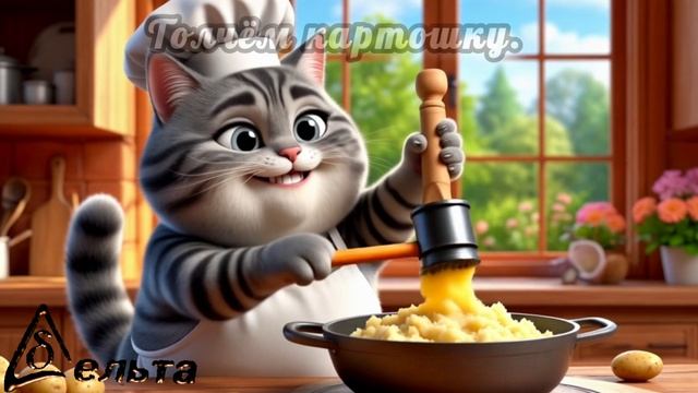 Весёлый котик показывает как готовить используя реальные рецепты. Qr code с полным рецептом приготовления в конце.