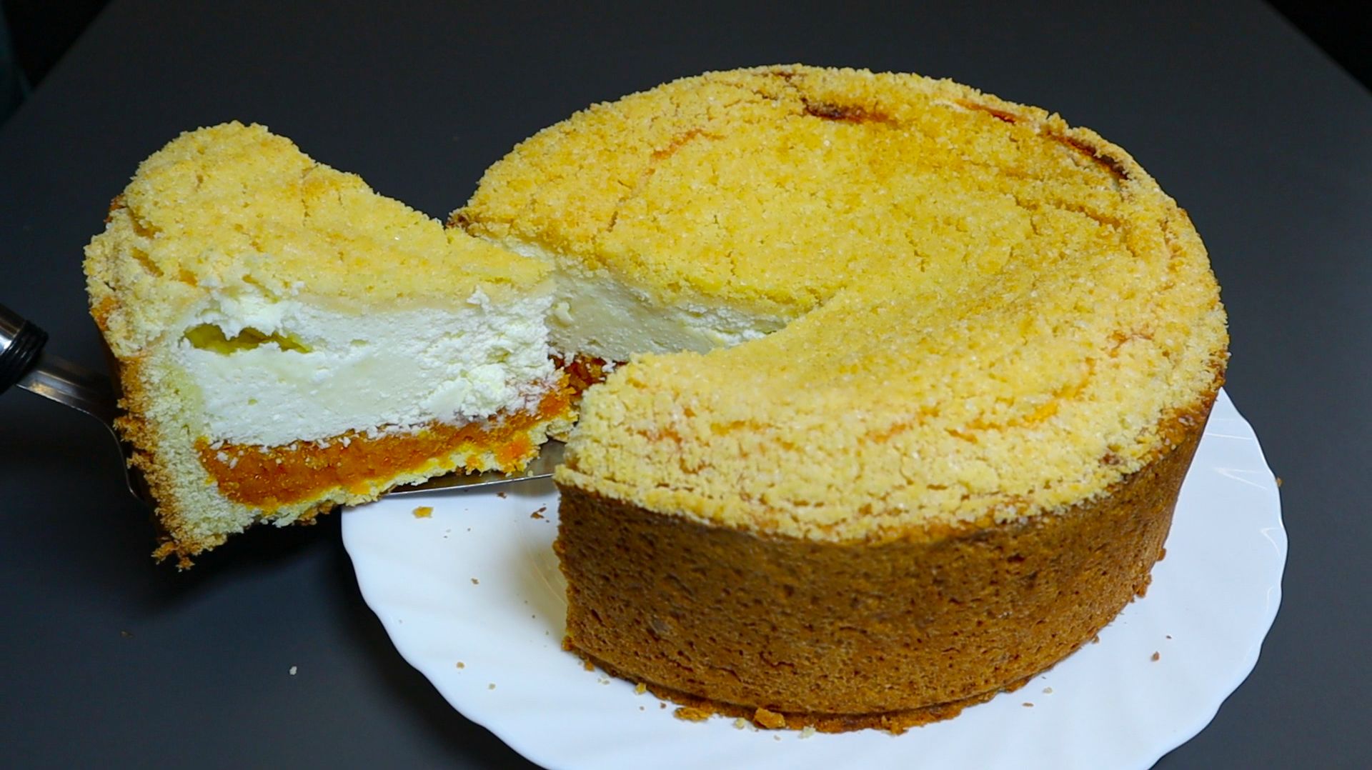Невероятно вкусный десерт к чаю. Готовлю его каждые выходные! Вкусно и просто. Добрый день! Сегодня приготовим обалденно вкусный пирог с курагой. Рецепт вкусного десерта. - 2 яйца. Отделяем белки от желтков. - мука 240 г. - разрыхлитель 1 ч.л. - сливочное масло (холодное) 90 гр. - сахар 2 ст.л. - сметана 2 ст.л. - форма для выпечки 20 см. - курага 300 г. - сахар 5 ст.л. добавляем в белки. - творог 350 г. + сметана 150 г. - Ванильный сахар 1 ч.л. + кукурузный крахмал 3 ст.л. - сливочное масло 40 г. - сахар 2 ст.л. + мука 3 ст.л. - в духовку на 45 минут при 180°C. Наш пирог с курагой готов! Если понравилось поставьте лайк, подпишитесь и напишите комментарий!