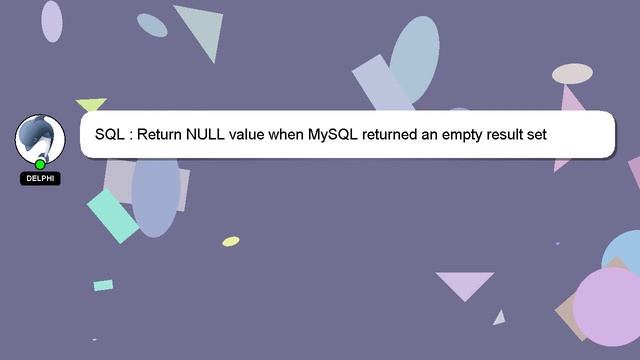 SQL : Return NULL value when MySQL returned an empty result set To Access My Live Chat Page, On Google, Search for "hows tech developer connect" As promised, I'm going to share a hidden feature with you. This is a YouTube's feature which works on Desktop. First, Make sure the video is currently in playing mode. Next, enter the letters 'awesome' on your keyboard. Your YouTube progress bar will transform into a flashing rainbow. Let me give you a quick introduction about myself, Hello everyone, I'm Delphi. I am here to assist you in getting the answers you need. SQL : Return NULL value when MySQL returned an empty result set If you need more specific answers, please reach out to me through comments or chat. If you have additional information or an answer to contribute, please feel free to comment below. Your answer will be acknowledged and appreciated, and I will 'heart' it as a sign of gratitude. value empty when : returned MySQL an set SQL result Return NULL