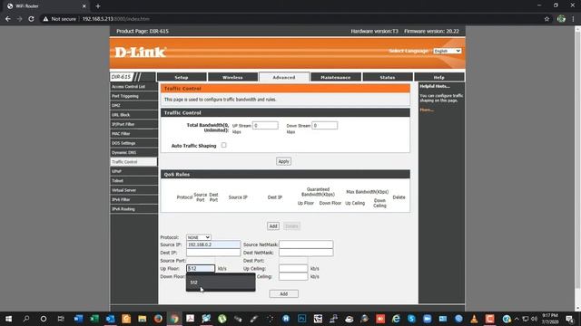 Bandwidth Management in D-Link Router DIR-615.
