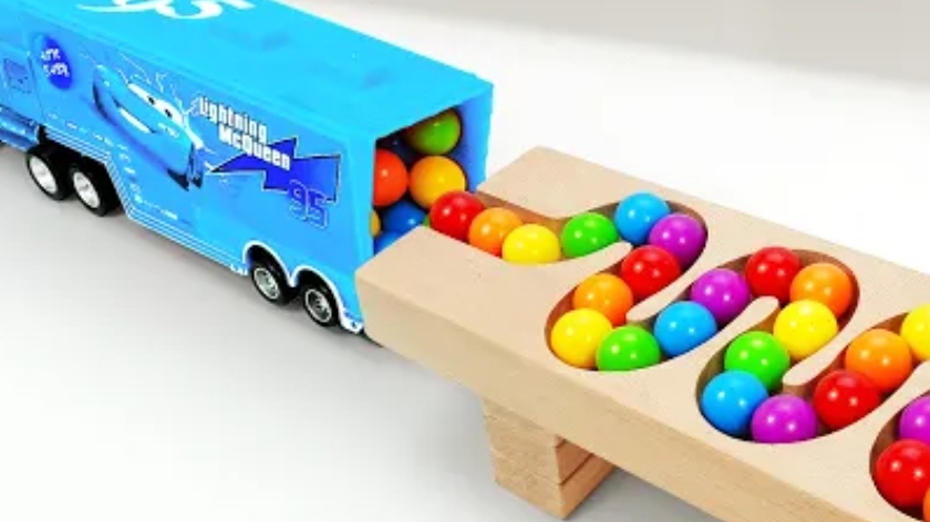 Залипательное видео для детей. Скатываем шарики с горки в машинку. Видеодлядетей.#дети#видеодлядетей