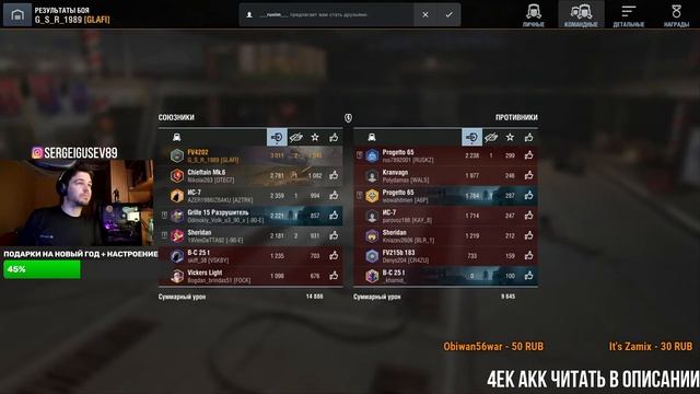 Играю со зрителями во взводе на стрим World of Tanks Blitz. Записаться в очередь можно в группе ВК ► http://vk.com/glafiwotblitz или через донат: ? http://www.donationalerts.ru/r/glafigsr ? https://donatepay.ru/don/glafi ✅ЧЕКК АККАУНТОВ ОТ 50р С ОБЯЗАТЕЛЬНЫМ УКАЗАНИЕМ ВОЗРАСТА ( без возраста не чекаю ) _________________ Интересные реплеи WOT BlitZ (обязательно со скриншотами) отправляем на почту, лучшие будут озвучены и опубликованы на канале ► sergeigusev89@gmail.com _________________ ?Видео которые всем понравились на прошлой неделе: FV215b 183 берет Колобанова ► https://www.youtube.com/watch?v=iXIFy8cz4rk Бесполезная ПТ-САУ ► https://www.youtube.com/watch?v=yu25_5OVlJw Скажи спасибо что их мало ► https://www.youtube.com/watch?v=EiXx9KB4h_g Скрытая ИМБА для статистов ► https://www.youtube.com/watch?v=K3jbFGj0CW8 Купил АТОМНУЮ ПТ-САУ ► https://www.youtube.com/watch?v=5WnjtFw52sQ _________________ ✅ Telegram ► https://t.me/GlafiGaming ✅ Группа ВК ► http://vk.com/glafiwotblitz ✅ Instagram ► https://www.instagram.com/sergeigusev89 ✅ Discord ► https://discord.gg/eGNcNG8 ✅ Сотрудничество и реклама ► glafi.info@gmail.com _________________ WoT Blitz - игра про мир танков для мобильных устройств. Вы можете увидеть гайды World of Tanks Blitz с разбором тактик и стратегий игры в танки. Вот Блиц игра которая многих не оставит равнодушными к танкам. #World_Of_Tanks_Blitz #WoT_Blitz #Танки #Glafi