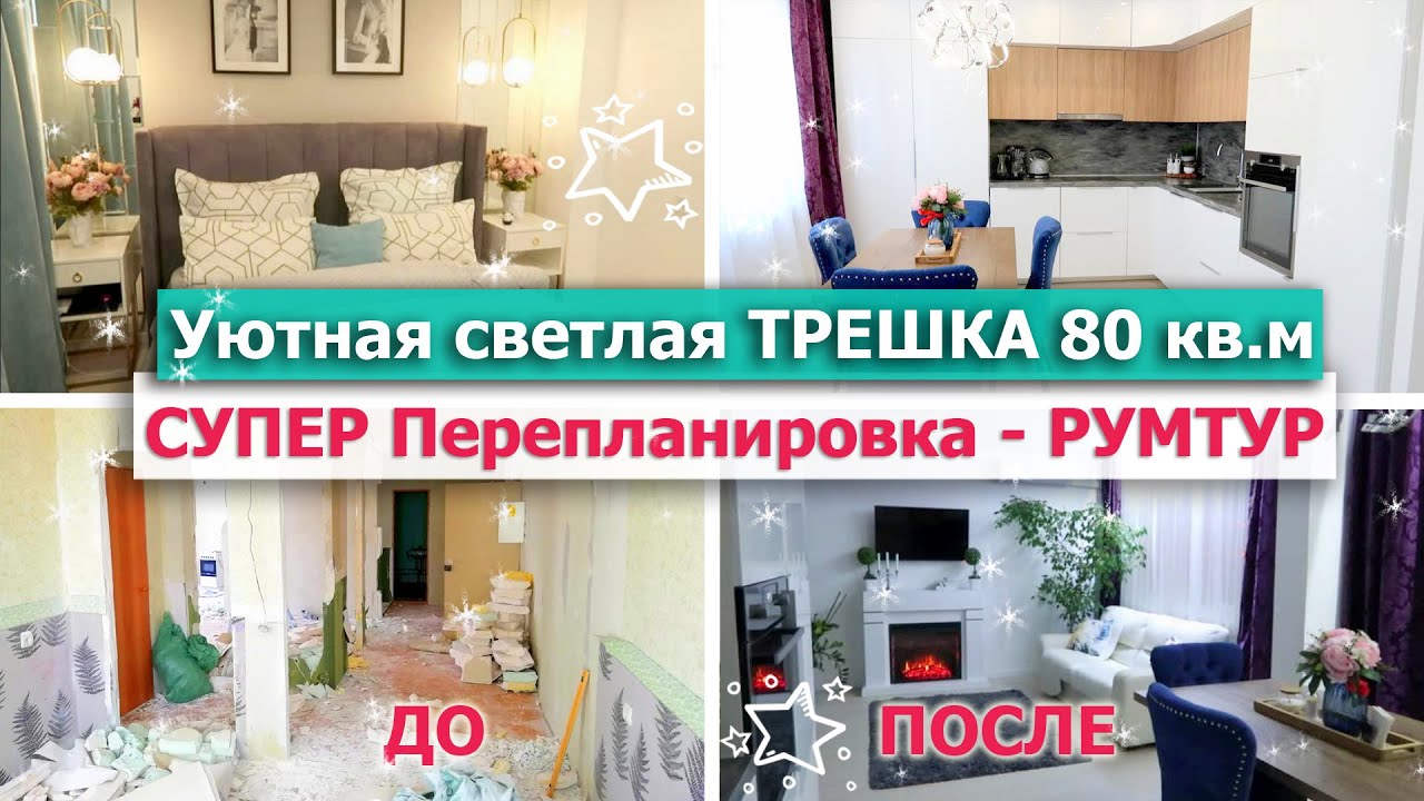 РУМ ТУР по КВАРТИРЕ ?? Крутая ПЕРЕПЛАНИРОВКА ТРЕШКИ ДО/ПОСЛЕ?Светлая ТРЕШКА 80кв Дизайн Интерьера