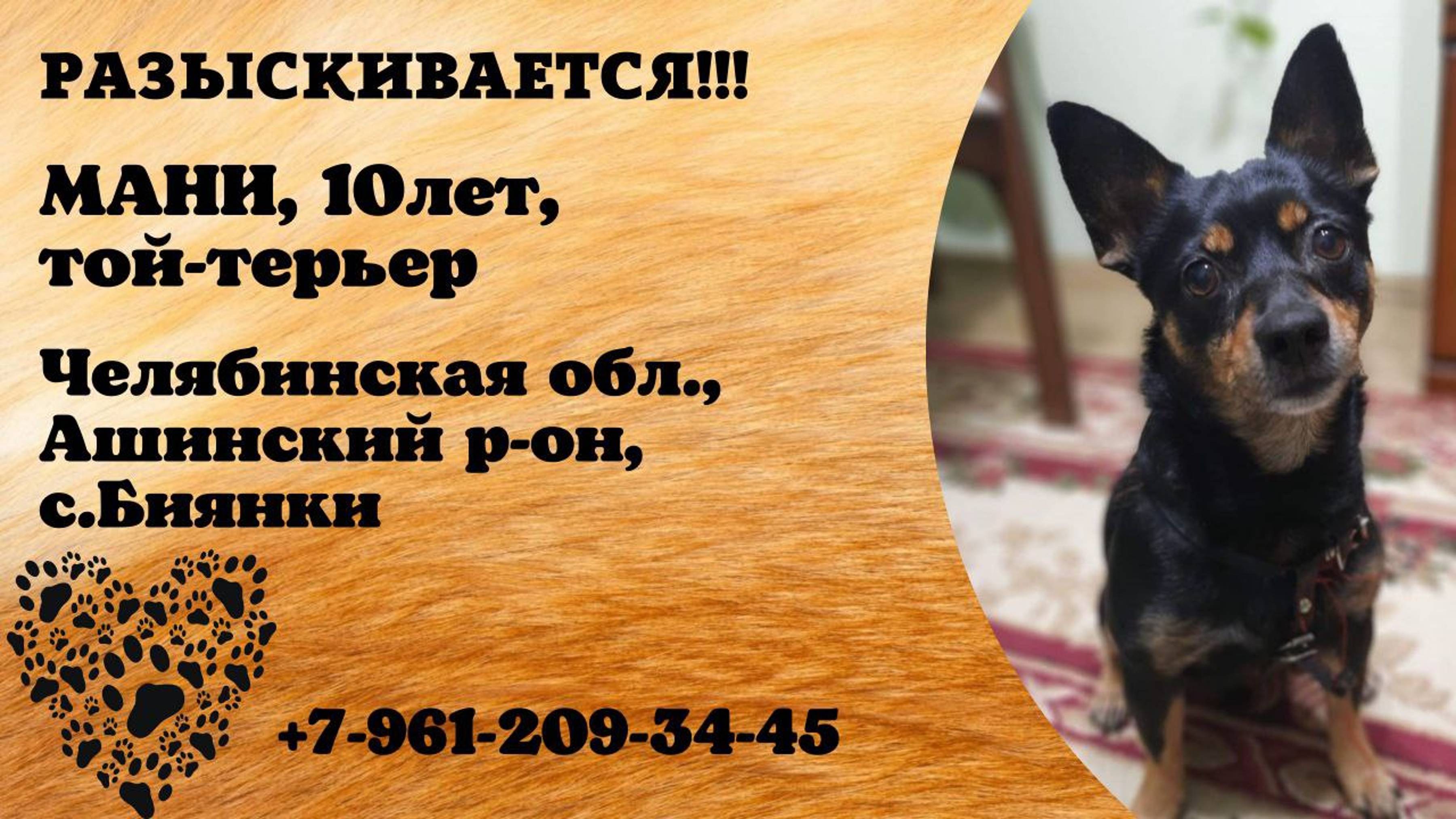 Пропала собака! МАНИ. 10 лет. Той-терьер. Челябинская область, Ашинский р-он, с. Биянка