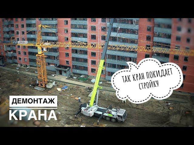 Так кран покидает стройку! Демонтаж башенного крана!