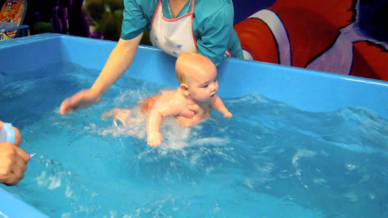 в детском бассейне. По началу было, конечно, не привычно, особенно когда ребенок ныряет =)