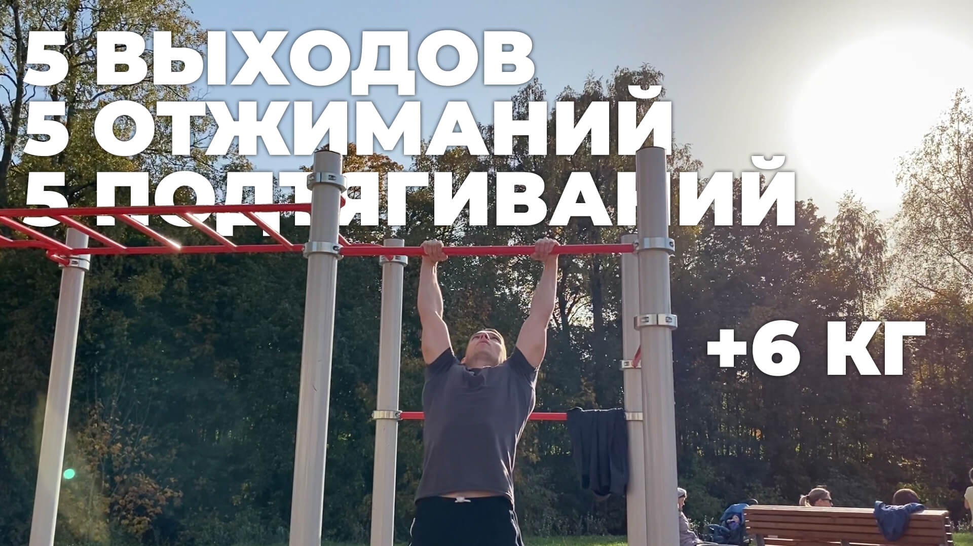 5 выходов силой - 5 подтягиваний - 5 отжиманий с +6кг