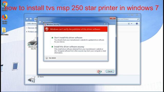 How to Install TVS MSP 250 Dot Matrix Printer Window 7