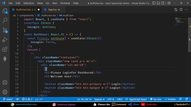 React Conditional rendering with typescript complete example in detail learn complete react typescript in hindi Instagram ID: https://www.instagram.com/technical_update/ ? Also Watch other programming tutorials in my channel : HTML CRASH COURSE: https://youtu.be/0FHjMebOPuU CSS Crash Course: https://youtu.be/cyPvnBtONWg SASS Crash Course: https://youtu.be/n7ew3XLaUSE ES06 Crash Course: https://youtu.be/Od6qMntR6mU React Js Crash Course: https://youtu.be/4u6GJS6lJOU REDUX Tutorails (Core| Redux-thunk| Redux-Saga| ToolKit) https://youtube.com/playlist?list=PLuHGmgpyHfRxigAF3har3OZz7Ybremi76 Pizza Shope Mern Stack Project: https://youtube.com/playlist?list=PLuHGmgpyHfRwvDURL4coRxBdDZZ8B7JCN Ecommerce Mern Stack Project: https://youtube.com/playlist?list=PLuHGmgpyHfRw6vj1vd_Pf0Zjd2muTvjI5 #reacttypescript #reactjs #typescript More Useful Content Comming Soon so please subscribe to my channel and turn on all notification for regular updates? ----------------------------------------------------- Email for business: rktechnicalplus@gmail.com -------------------------------------------------------------------- ? ? ? ? ? ? ? ?? ? ? /*****Support my work********* every single rupees matter (1Rs-10Rs-100Rs....) for India : (PAYTM/ GooglePay/Phonepay /Amazon Pay ) * BHIM UPI :techinfoyt@upi * Outside INDIA:(PayPal) https://www.paypal.com/paypalme/techinfoyt OR paypal.me/techinfoyt