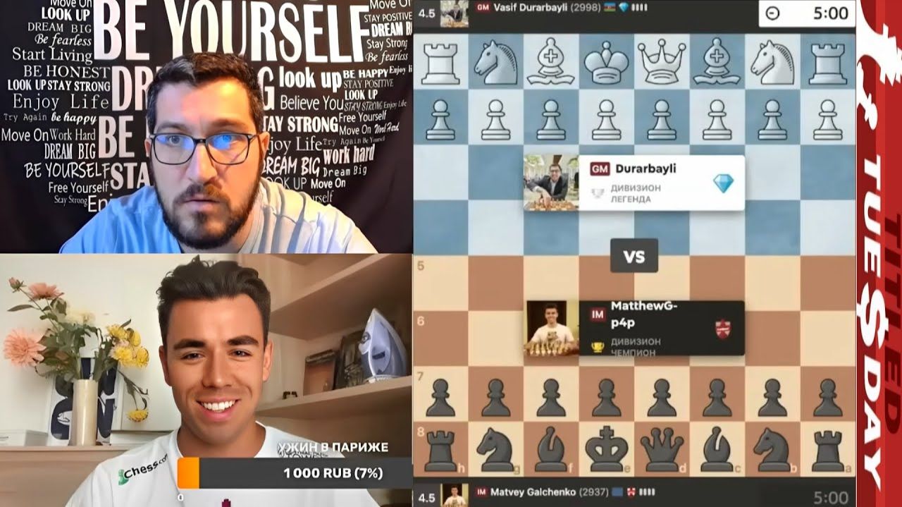 ОБМАНУЛ на ТАКТИКЕ! Васиф Дурарбейли - Матвей Гальченко 09.09.2025 МГ Васиф Дурарбейли (канал) - https://www.twitch.tv/gmdurarbayli ММ Матвей Гальченко (канал) - https://www.youtube.com/channel/UCvJVKjyObf20wQ6XMlwkzHQ