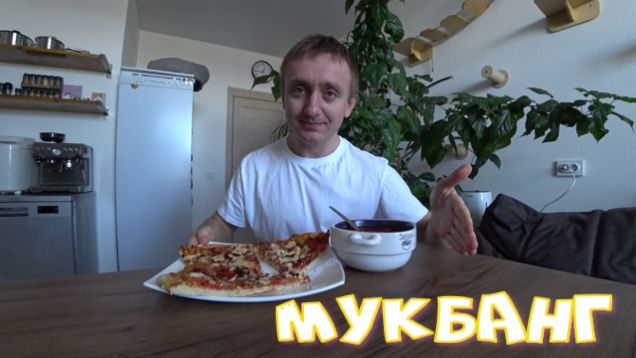 Мукбанг. Первый раз в жизни сам приготовил пиццу.