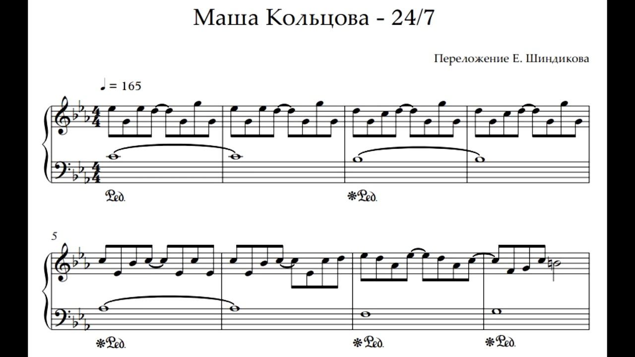 Ноты для фортепиано Маша Кольцова - 24/7