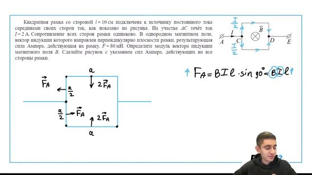 Квадратная рамка со стороной l 10 см подключена к источнику постоянного тока серединами - №30668