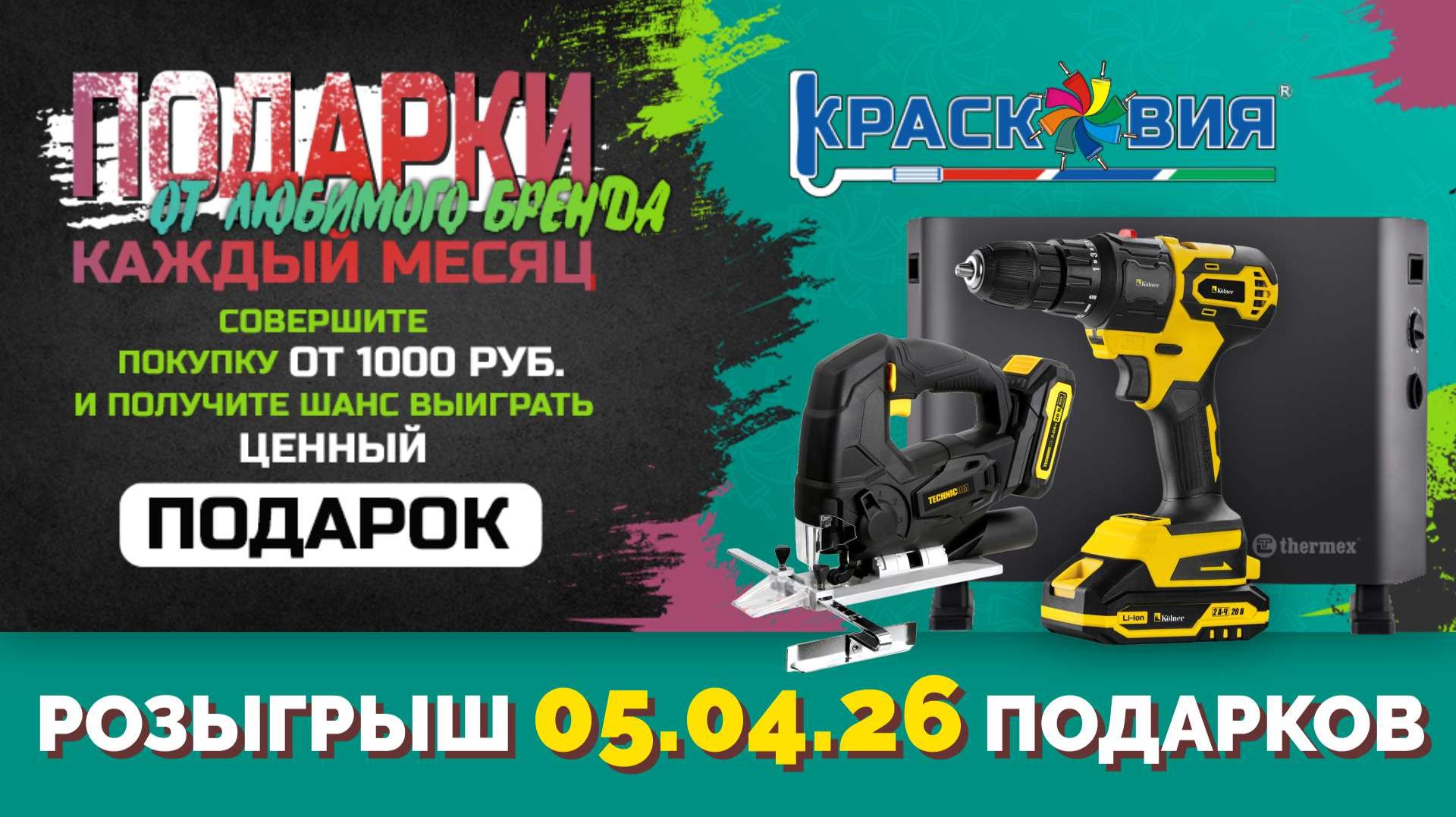 Друзья, приветствуем вас свежим анонсом розыгрыша подарков! В марте при покупке продукции «Красковия» на сумму от 1 000 рублей (указанной в чеке) вам предоставляется уникальный код участника розыгрыша «ПОДАРКИ ОТ ЛЮБИМОГО БРЕНДА». Розыгрыш состоится 5 апреля 2026 года. Подробная информация о ближайшем мероприятии: https://kraskovia.ru/sale/rozygrysh_prizov_v_roznichnykh_magazinakh/ Информация о материалах реализуемых компанией Красковия: https://kraskovia.ru/