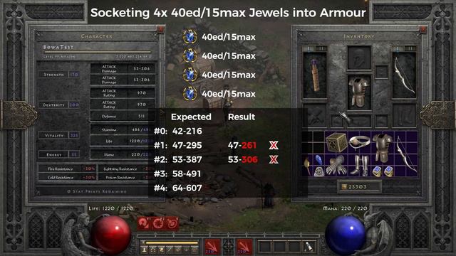 Hi guys. Today I wanted to bring this video to you to share the enhanced damage jewel bug that exists in Diablo 2. If you're looking to complete that super sweet high damage jeweller's tiara or archon plate with some nice high end jewels but you're not aware of this bug, please watch this video to avoid getting stung! This is an old bug since Diablo 2: Lord of Destruction, but it still exists today in Diablo 2: Resurrected. Note: See addendum video created which tests the performance of bugged vs non-bugged jeweller's armours here: https://youtu.be/ej2dEN9BnrQ Timestamps 0:00 Intro 0:32 Bug overview 1:22 Test setup and process 1:50 Socketing 4x Jewels into Grand Matron Bow 5:05 Socketing 1x Jewel into Stormshield 7:08 Socketing 4x Jewels into Archon Plate 11:24 Socketing 4x Mixed Jewels into Archon Plate 14:39 Socketing 1x 40ed/15ias Jewel into +11 min damage Tiara 15:30 Socketing 1x 40ed/15ias Jewel into Archon Plate 16:09 Socketing 2x 15max/15ias Jewels into +30%ed Rare Diadem 17:01 Conclusion 17:53 Outro #diablo2 #d2r #d2 #bowazon #d2ritems