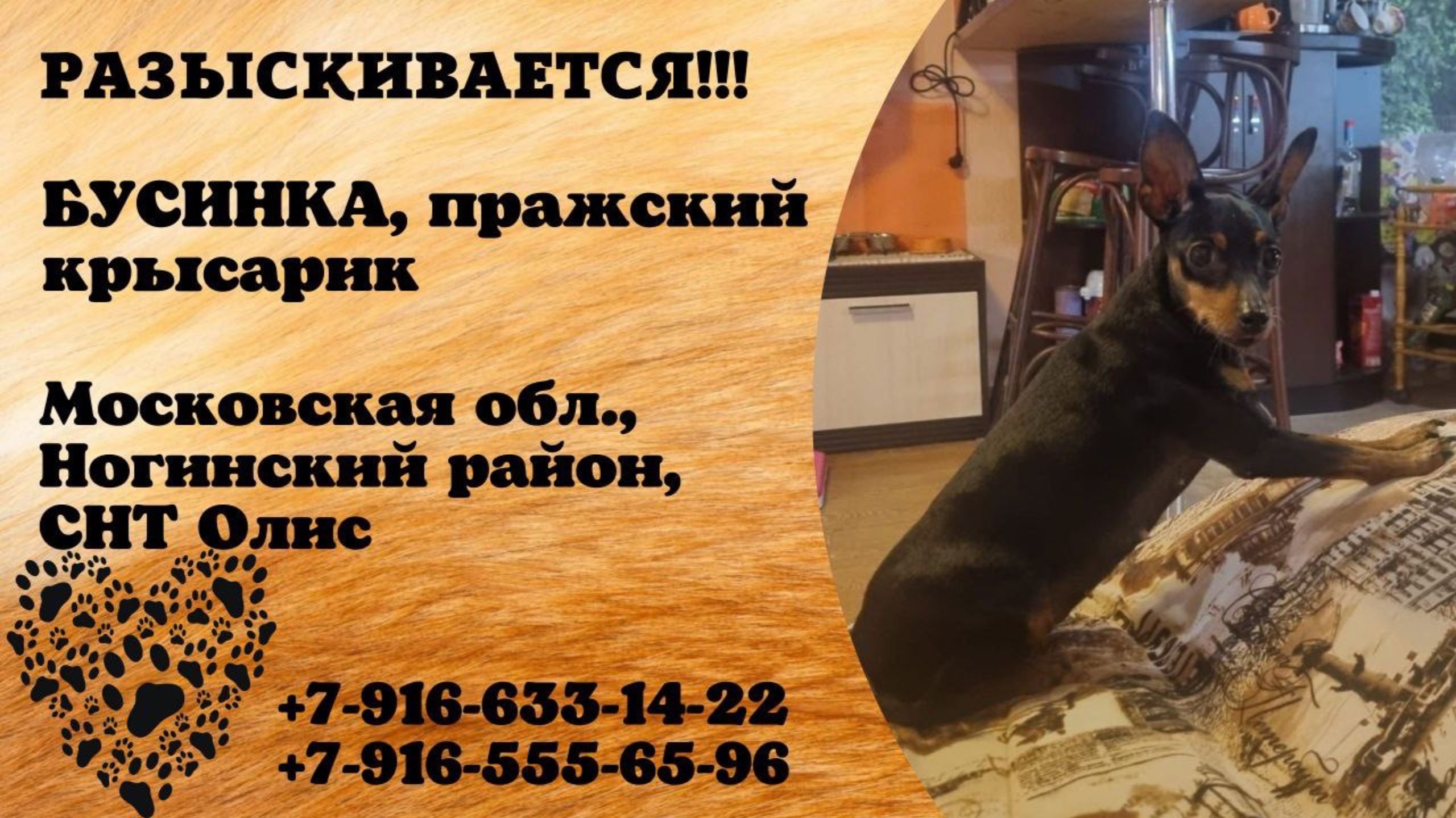 Пропала собака! БУСИНКА, пражский крысарик. Московская обл., Ногинский р-н, СНТ Олис.