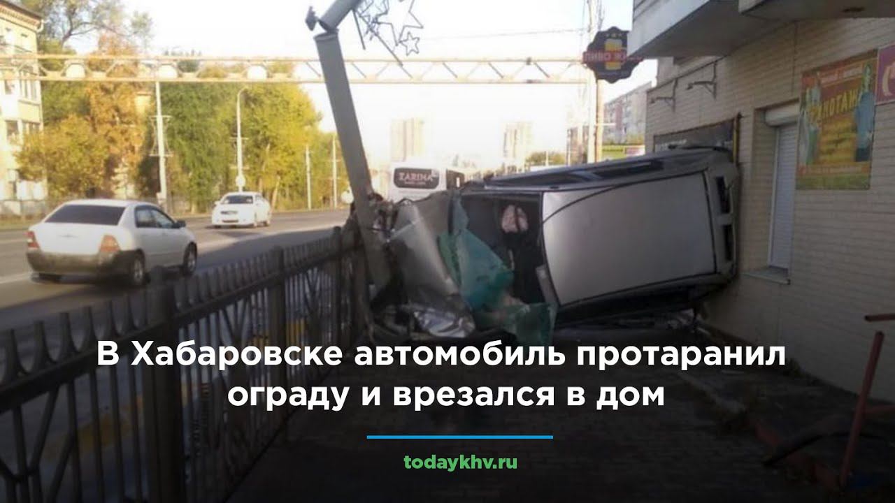 В Хабаровске автомобиль протаранил ограждение и врезался в дом