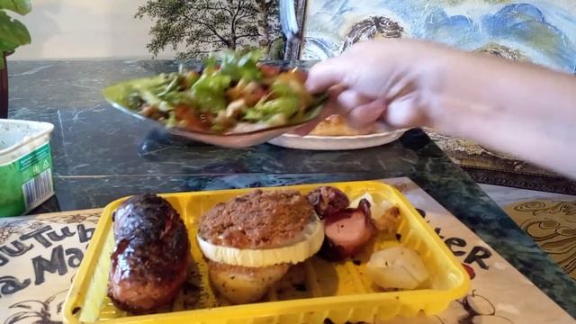 Мукбанг . Еда . За камерой . Картошка . Салат . На костре. Пироги . Сардельки. Соус. Видео. Mukbang
