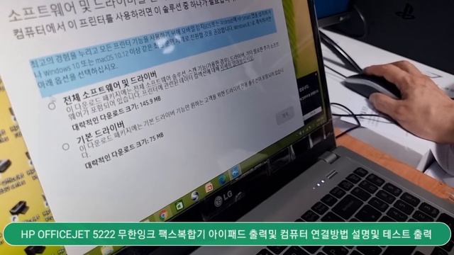 HP OFFICEJET 5222 무한잉크 팩스복합기 아이패드 연결 및 컴퓨터 연결 방법 설명및 테스트 출력시연 동영상