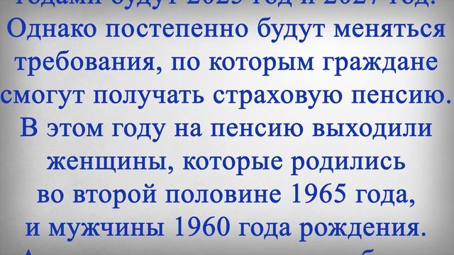 с 1 Января 2023 года ТРЕБОВАНИЯ для Пенсионеров Вырастут! Российских граждан 1961 года рождения и моложе предупредили насчет пенсии. Людям напомнили о том, какие требования по назначению выплаты относительно скоро для них заработают в полном объеме. А в целом такие изменения должны завершиться уже к 2028 году. Переходный период по пенсионной реформе, которая была принята еще в 2019 году, скоро подойдет к своему экватору. В целом процессы в рамках реформы должны завершиться к 2028 году, но на ближайшие несколько лет запланированы несколько важных нововведений для россиян. Так, например, в следующем году пенсии по старости назначаться не будут. Точно такими же «пропущенными» годами будут 2025 год и 2027 год. Однако постепенно будут меняться требования, по которым граждане смогут получать страховую пенсию. В этом году на пенсию выходили женщины, которые родились во второй половине 1965 года, и мужчины 1960 года рождения. А следующими на очереди будут, соответственно, женщины 1966 года рождения и мужчины, которые родились в 1961 году. Но на заслуженный отдых они смогут уйти лишь в 2024 году, когда им исполнится 58 лет и 63 года соответственно. При этом требования по стажу и пенсионным баллам для них будут уже совсем другими, нежели сейчас. В этом году для страховой пенсии по старости требовалось подтвердить 13 лет стажа и 23,4 пенсионных коэффициента. А в 2024 году необходимый минимальный объем стажа вырастет до 15 лет, то есть его повысят еще на два года. Что касается баллов, минимум достигнет уже 30, именно столько нужно будет накопить, чтобы страховая пенсия была назначена. В противном случае гражданину предложат либо докупить стаж, либо подождать до социальной пенсии, которая назначается на пять лет позже. Ставьте лайк если считаете, что требования для назначения пенсии необходимо снизить, а размер пенсии повысить и напишите какие, по-вашему, должны быть требования для назначения пенсии и её размер?