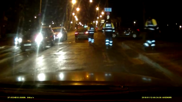 Водитель не пропустил сотрудников ДПС на пешеходном переходе и был остановлен и наказан.