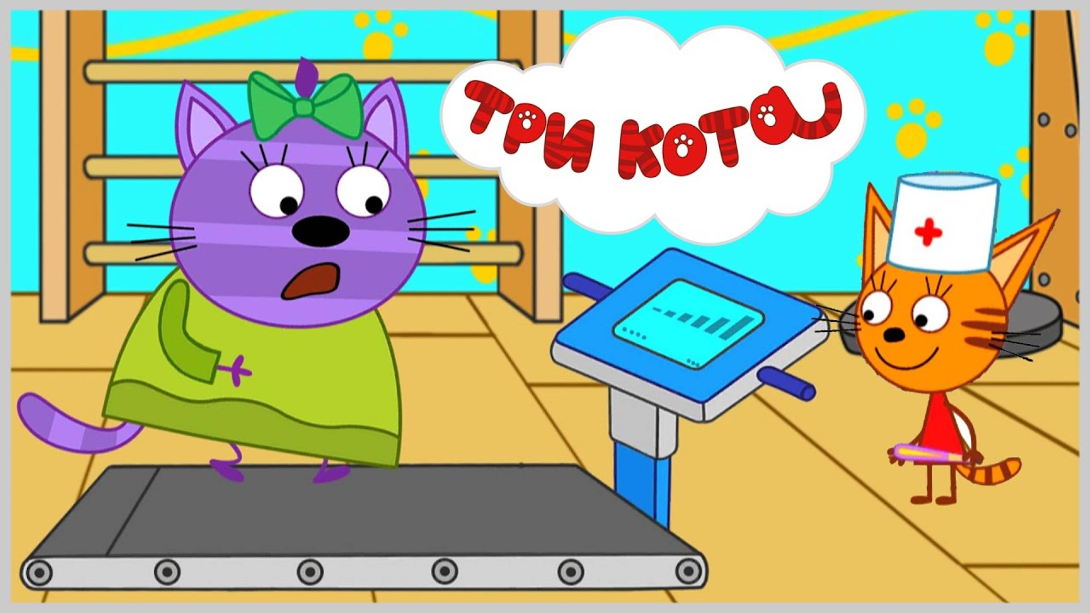 Три Кота Фитнес худеем с Горчицой и Карамелькой делаем прививки против Кошачьего Гриппа