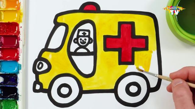Рисуем скорою помощь! Живопись, раскраски для детей и малышей! Как рисовать, основы рисования краска